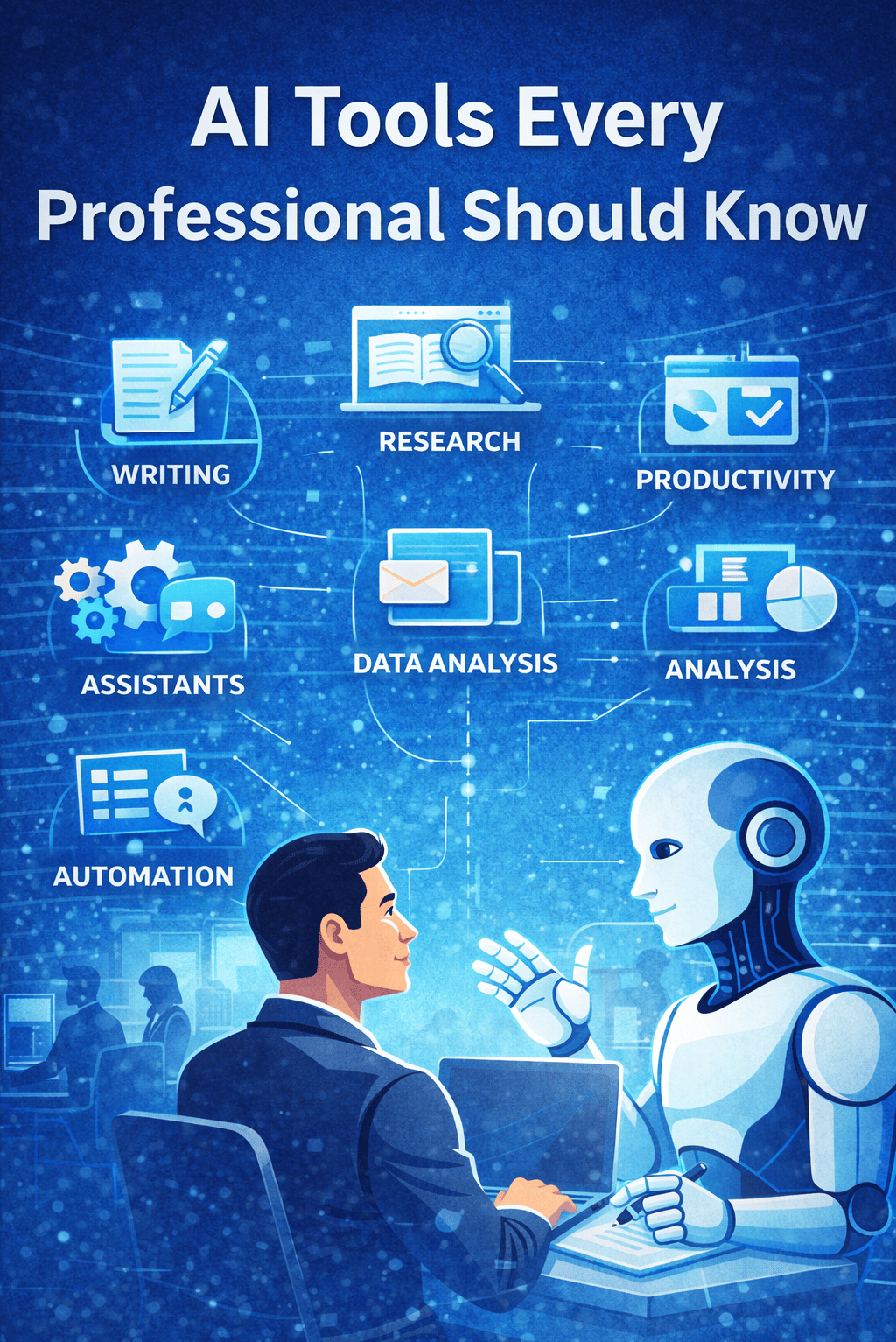 Artificial Intelligence is no longer reserved for researchers or tech experts. In 2026, AI tools have become essential companions for professionals across nearly every industry. Whether you work in IT, business, marketing, education, finance, or administration, knowing how to use AI can significantly boost your efficiency and performance. Let’s explore the types of AI tools every modern professional should be familiar with.